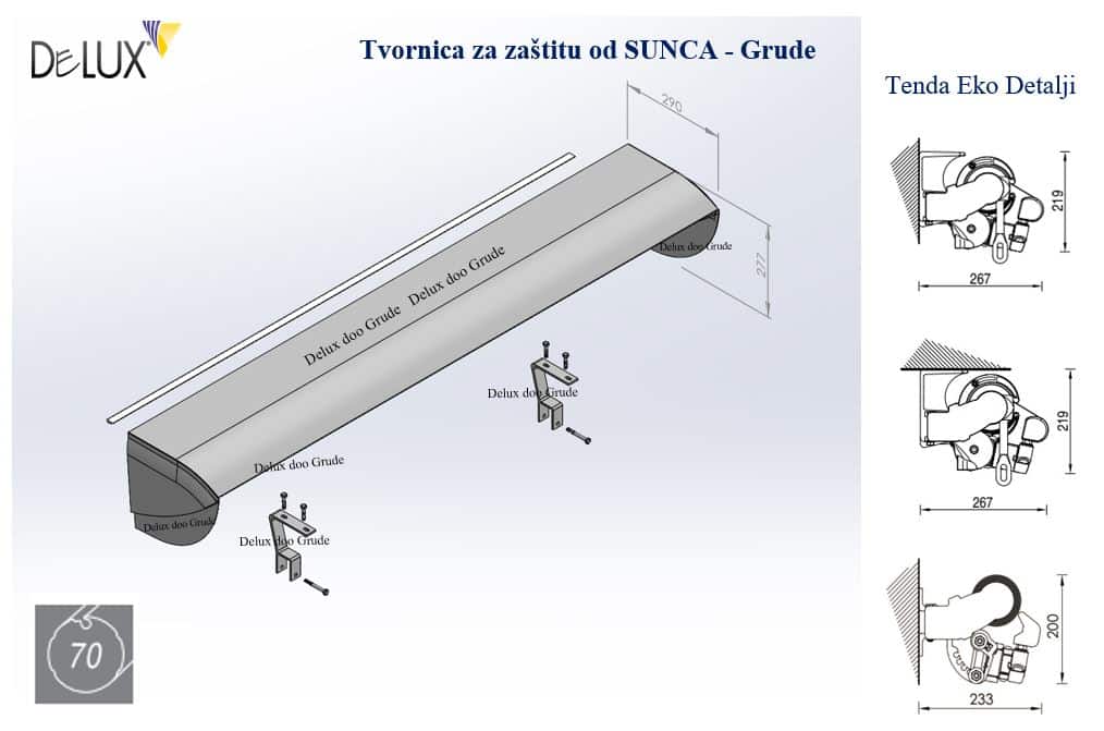 Aluminijska pokrovna kaseta sa nosačima, detalji ugradnje Eko tende.