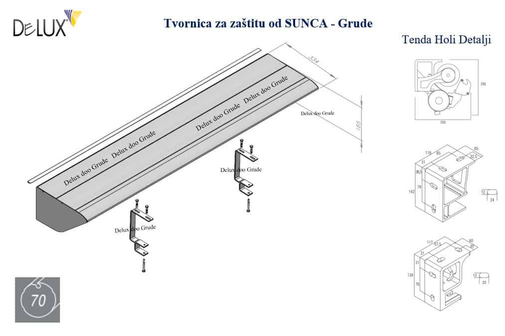 Aluminijska pokrovna kaseta sa nosačima, detalji ugradnje Holi tende.