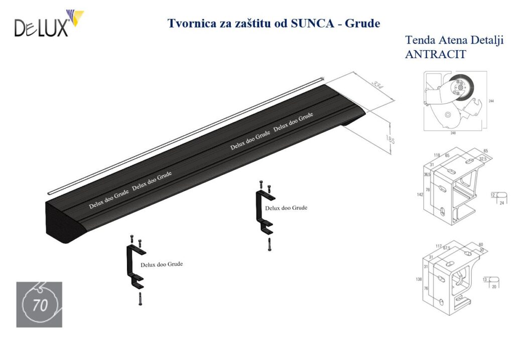 Aluminijska pokrovna kaseta sa nosačima, detalji ugradnje Monako tende.