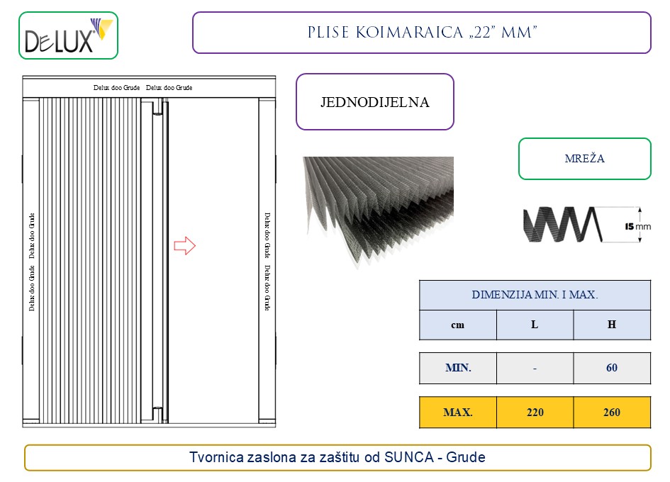 DETALJI SA DIMENZIJAMA PLISE KOMARICE 22 mm