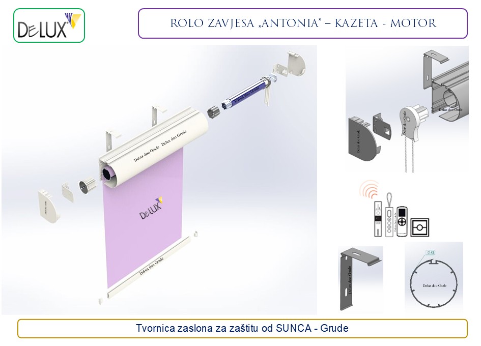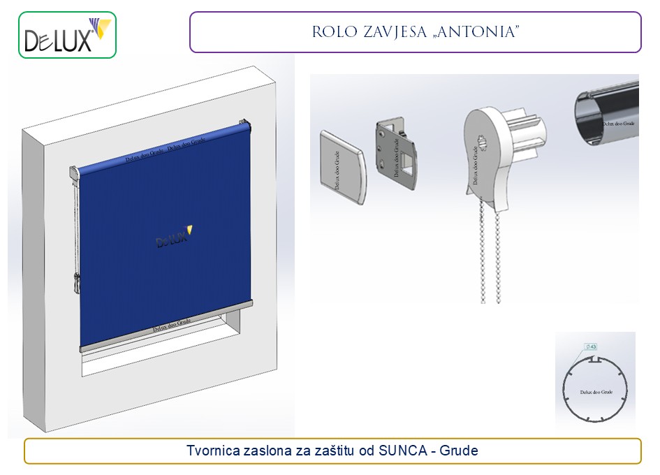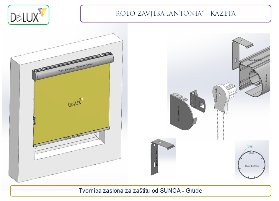 Delux rolo zavjesa Antonia s ukrasnom kazetom za potpuno sakrivanje mehanizma i materijala