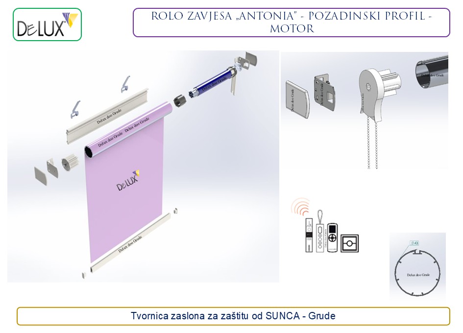 Delux motorizirana rolo zavjesa Antonia s pozadinskim profilom za stabilnu i automatiziranu ugradnju