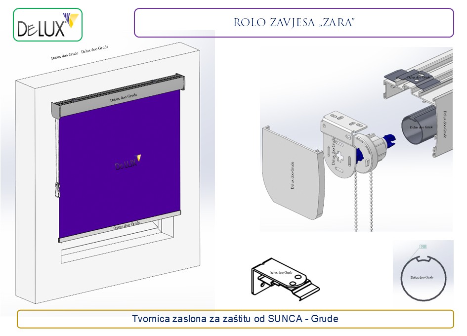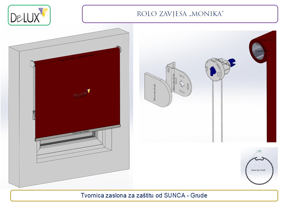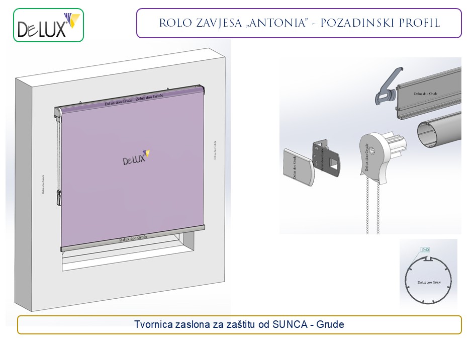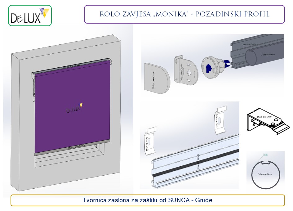 Delux rolo zavjesa Monika s aluminijskim pozadinskim profilom za stabilnu i laku montažu na prozor