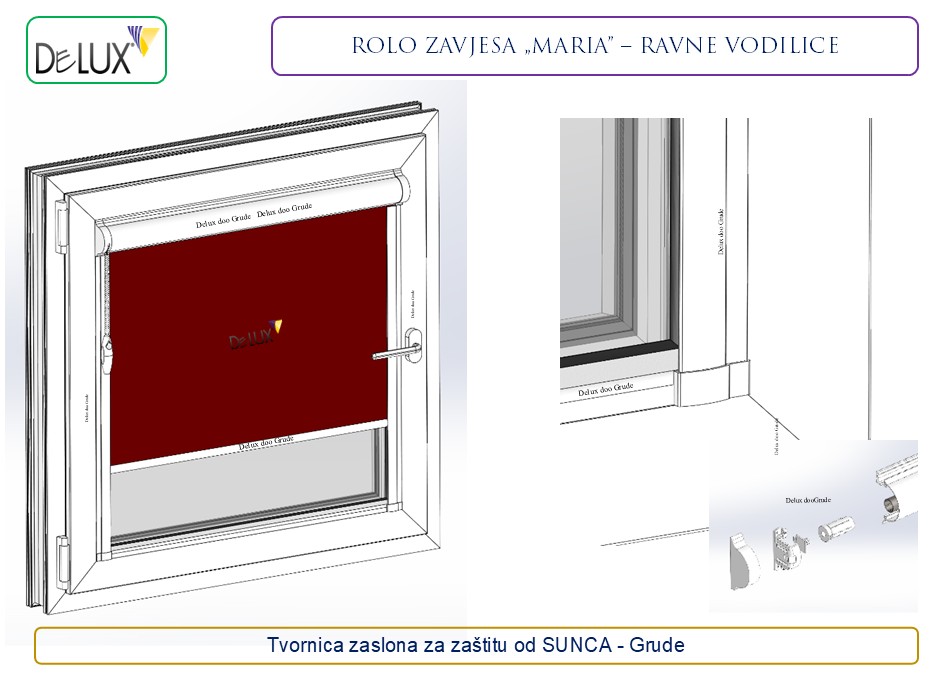 Delux rolo zavjesa Maria ravne vodilice osiguravaju prianjanje tkanine uz staklo