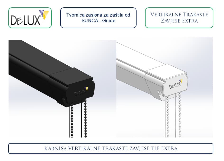 Crna i bijela karniša za vertikalne trakaste zavjese tip Extra tvornice Delux